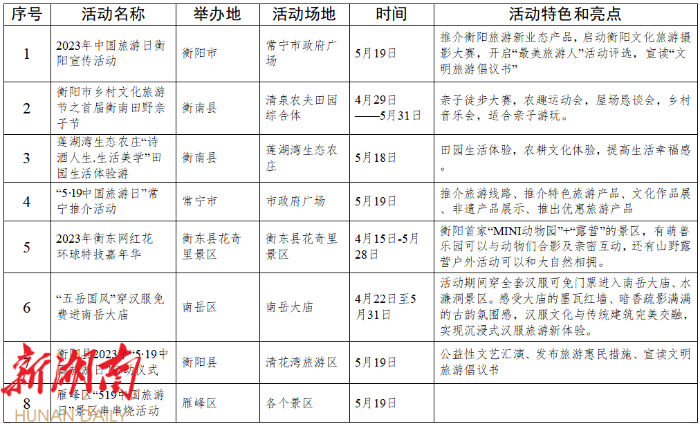 衡阳推出多种形式的旅游惠民活动