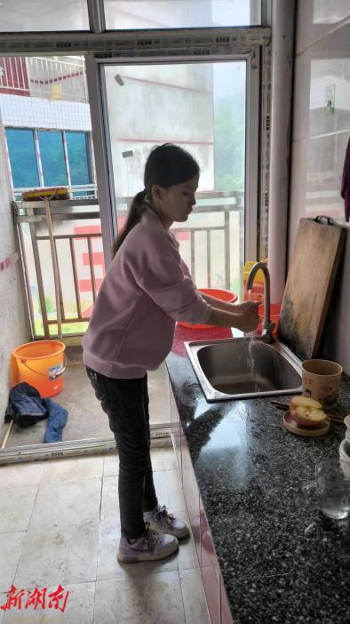 4月19日,当湖南经视的记者来到冷水江市光明村村民刘赞美家中采访时,这位亭亭玉立的小姑娘正忙着做家务。