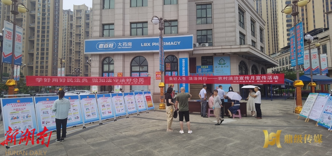 湖南日报·新湖南客户端 5月19日讯 (通讯员 欧阳曾) 5月19日上午 ,鼎城区司法局红云司法所联合红云街道平安办、武陵镇法庭于在仙女湖步行街广场开展以“美好人生 法治同行”为主题的农村法治宣传月活动。