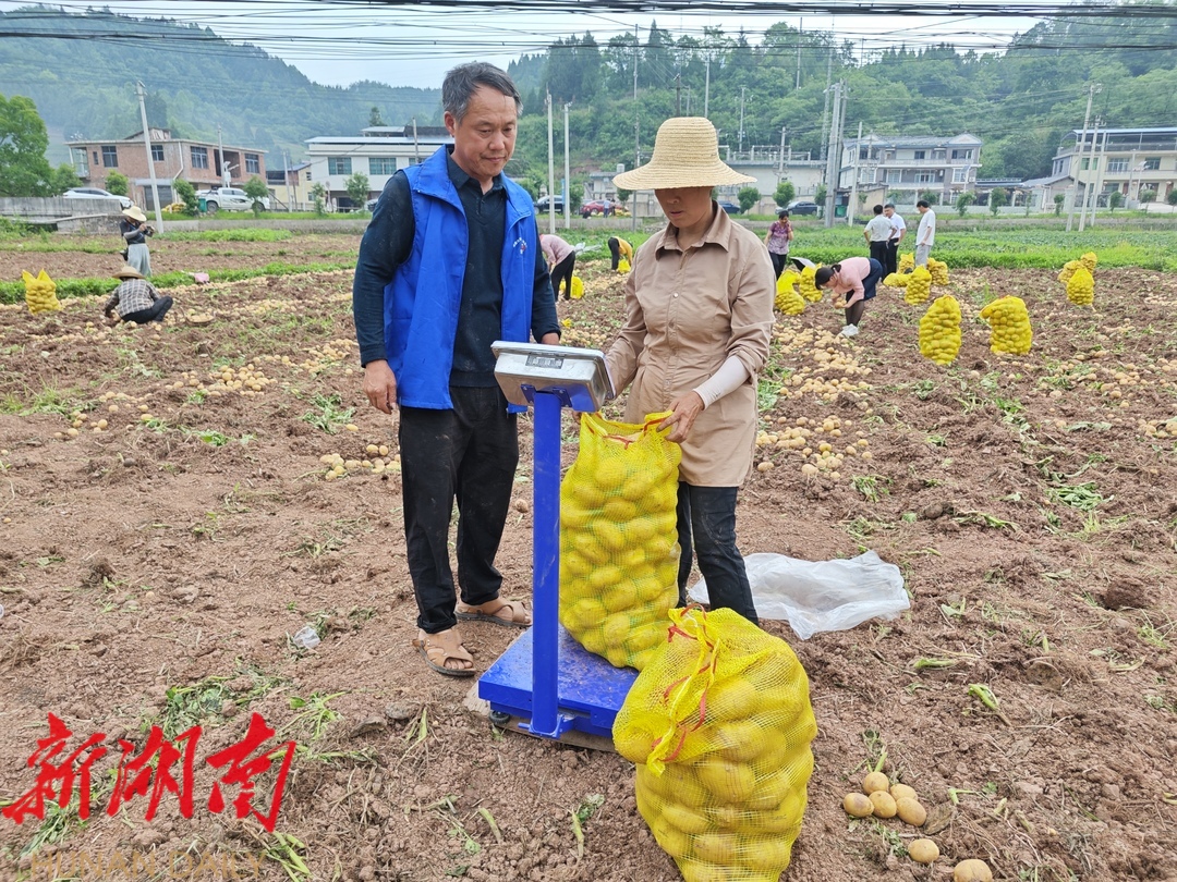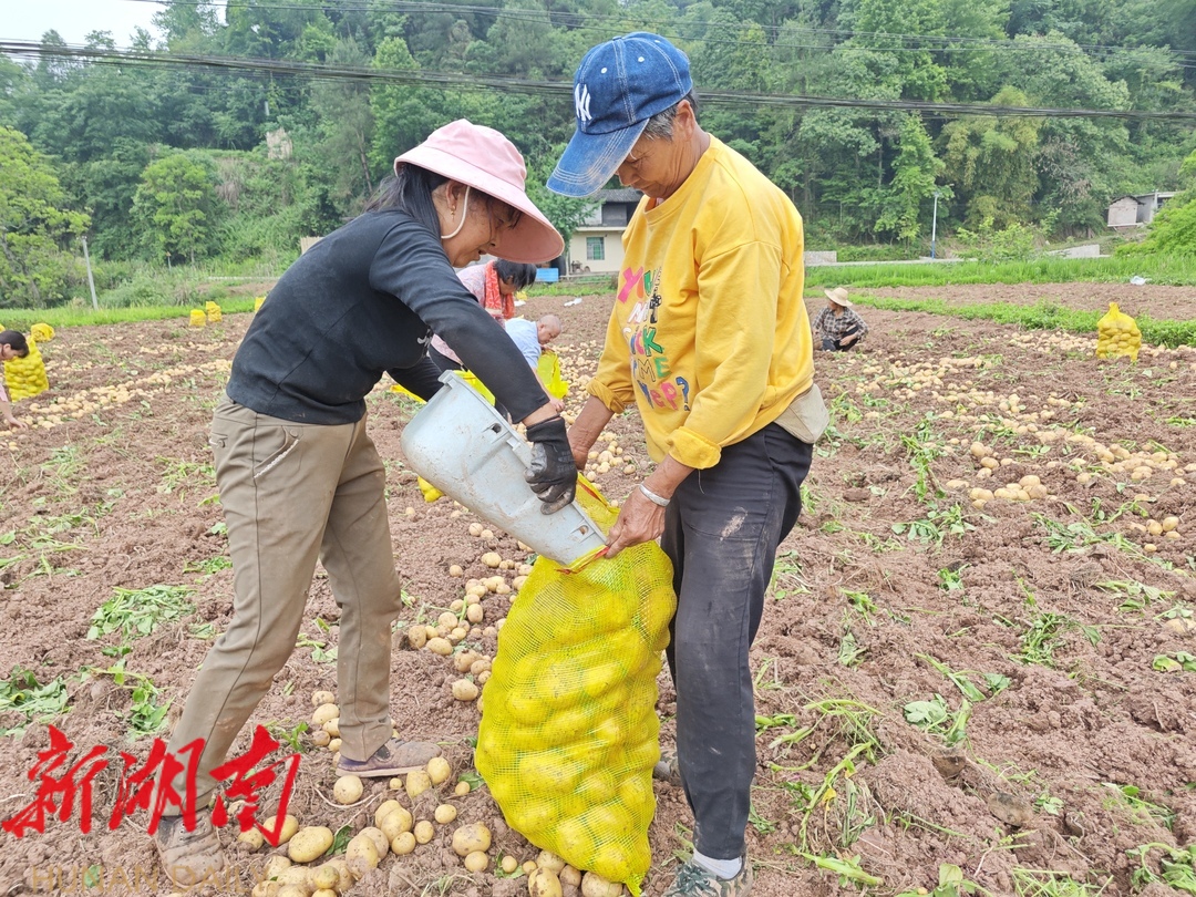 在采收过程中,县农业农村局、县委宣传部相关负责人还带领湖南杂交水稻研究中心、湖南农业大学专家教授到现场开展马铃薯测产,经过随机取点进行实地挖方测产结果显示,该基地的马铃薯产量为亩产3200多公斤,在马铃薯中属于高产,超额完成“三一工程”预期目标。