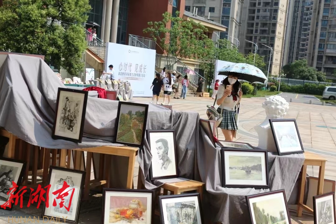 在学校歌剧院前坪,教学成果展吸引家长朋友们驻足欣赏,有中国传统文化的探究成果、社区设计活动成果以及CAS活动作品以及学生的艺术作品等。
