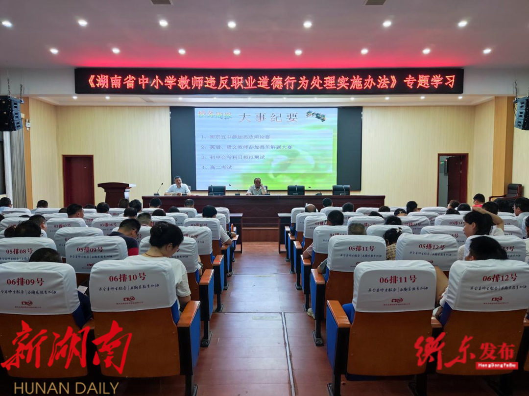衡东融媒5月23日讯 (通讯员 周遵优)为进一步规范教师职业行为,巩固师德师风长效机制建设成果,5月21日,衡东县第五中学组织全体教师召开了师德师风建设学习教育警示会。
