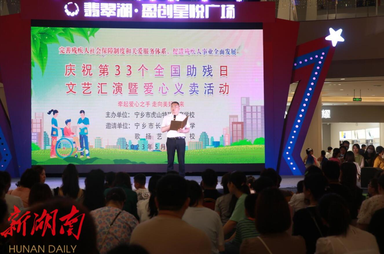 湖南日报·新湖南客户端讯(通讯员 刘石江)5月21日晚,宁乡市虎山特校在翡翠湖广场举行庆祝第33个全国助残日文艺汇演暨爱心义卖活动。宁乡市教育局副局长侯志宏、易富饶参加活动。