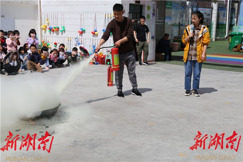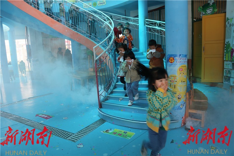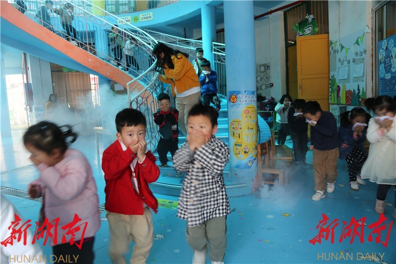 新湖南客户端4月27日讯(通讯员 田云华)4月27日下午,湘西土家族苗族自治州龙山县第一幼儿园全体教师及幼儿,进行突击消防演练。