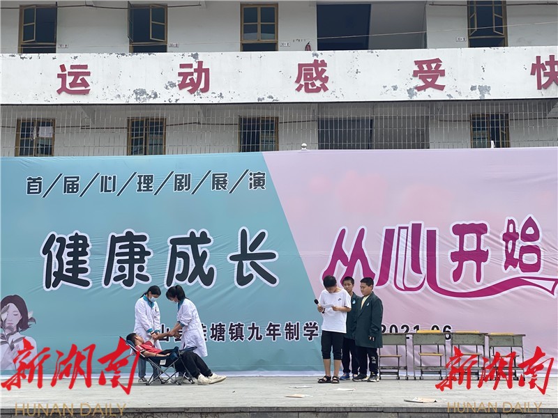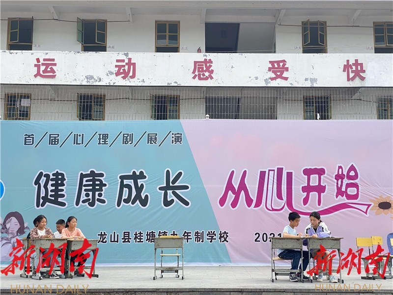 新湖南客户端6月8日讯(通讯员 彭文娟 瞿雯)6月8日上午,湘西土家族苗族自治州龙山县桂塘镇九年制学校举行“健康成长·从心开始”首届校园心理剧大赛,引导学生形成乐观向上、充满自信的态度,以阳光心态去学习和生活。
