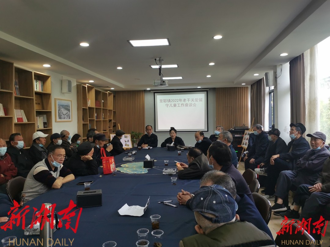 新湖南客户端 4月23日讯(通讯员 向洁 俞瀛) 4月23日,湘西土家族苗族自治州龙山县里耶镇召开2022年老干关爱留守儿童工作座谈会,镇党委和六十余名离退休老干部共同参会。