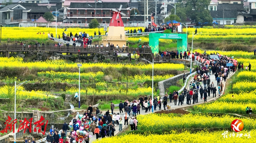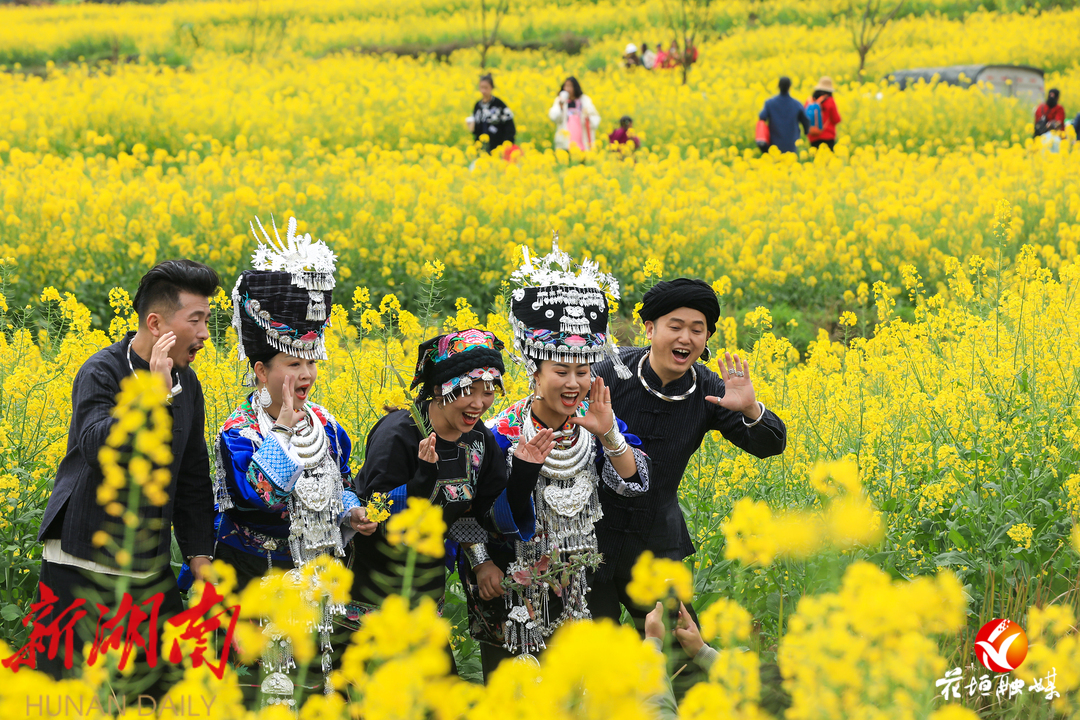 湖南日报·新湖南客户端3月26日讯(花垣融媒记者 岳慧 摄影 宋显金 龙恩泽 吴向申)三月春风送暖阳,蓝天白云映花黄。3月26日,中国·十八洞首届油菜花节暨湘商回归·空港新区建设招商推介会开幕。精彩的油菜花节吸引了来自四面八方的游客纷至沓来。