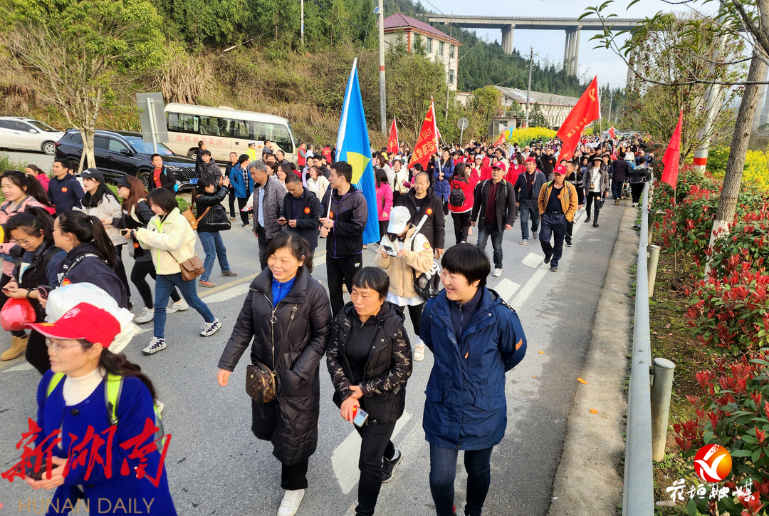 湖南日报·新湖南客户端3月26日讯(花垣融媒记者 杨泽江 林彬 吴向申)3月26日,花垣县“美丽山乡我的家”职工绿色公益全民徒步活动欢乐启程。大家沿途赏油菜花、桃花美景,拾捡垃圾,用行动践行环保意识。县委常委、县委组织部部长、县总工会主席鲁民明宣布活动启动。