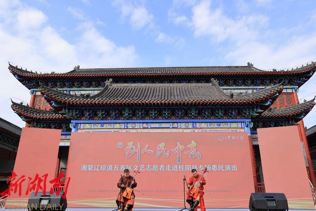 新桂阳5月26日讯(记者 廖诗卉 曹诗灏 欧阳宇轩 陈勇)5月25日,“到人民中去”第十个中国文艺志愿服务者日主题活动来到桂阳,湘蒙琼滇辽五省文艺志愿者在“千年古郡”桂阳采风交流,在古郡城戏台上同演“一台戏”,将文化盛宴送到群众身边,为人民抒情、为时代讴歌,桂阳县“百座戏台千场戏”累计演出超2000场。