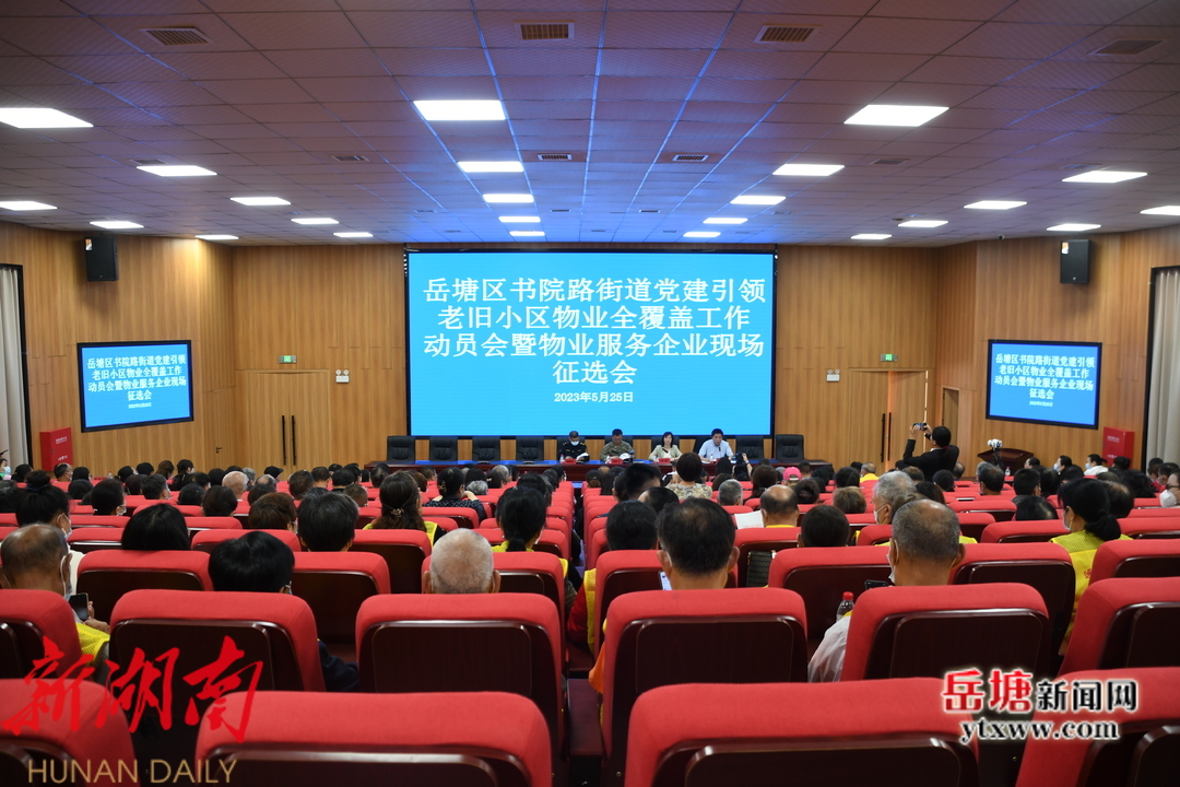 岳塘新闻网5月25日讯 (记者 张孟成)5月25日,岳塘区书院路街道老旧小区物业全覆盖工作动员会暨物业服务企业现场征选会举行。区委常委、区人武部政委胡轶飞出席。