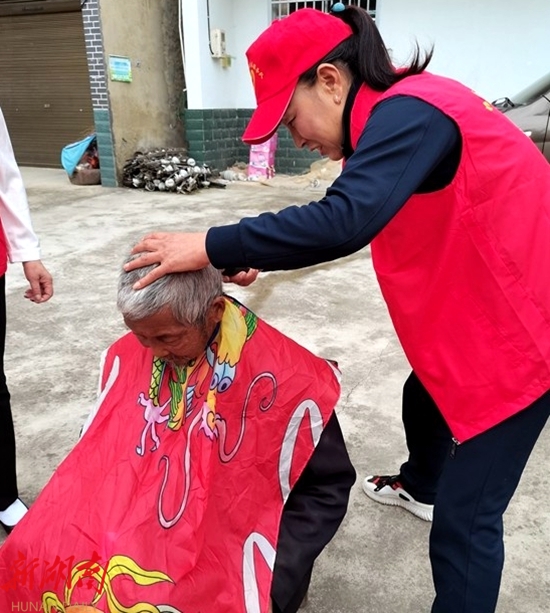 湖南日报·新湖南客户端 5月22日讯(通讯员 宋晓婷)5月22日,中湖乡杨家界社区巾帼志愿服务队开展“爱老敬老”志愿服务活动,志愿者上门为留守老人送去生活用品和健康体检报告,向老人讲解健康保健常识,并为老人打扫房间、庭院,为老人们剪头发、换被子,陪老人聊天。