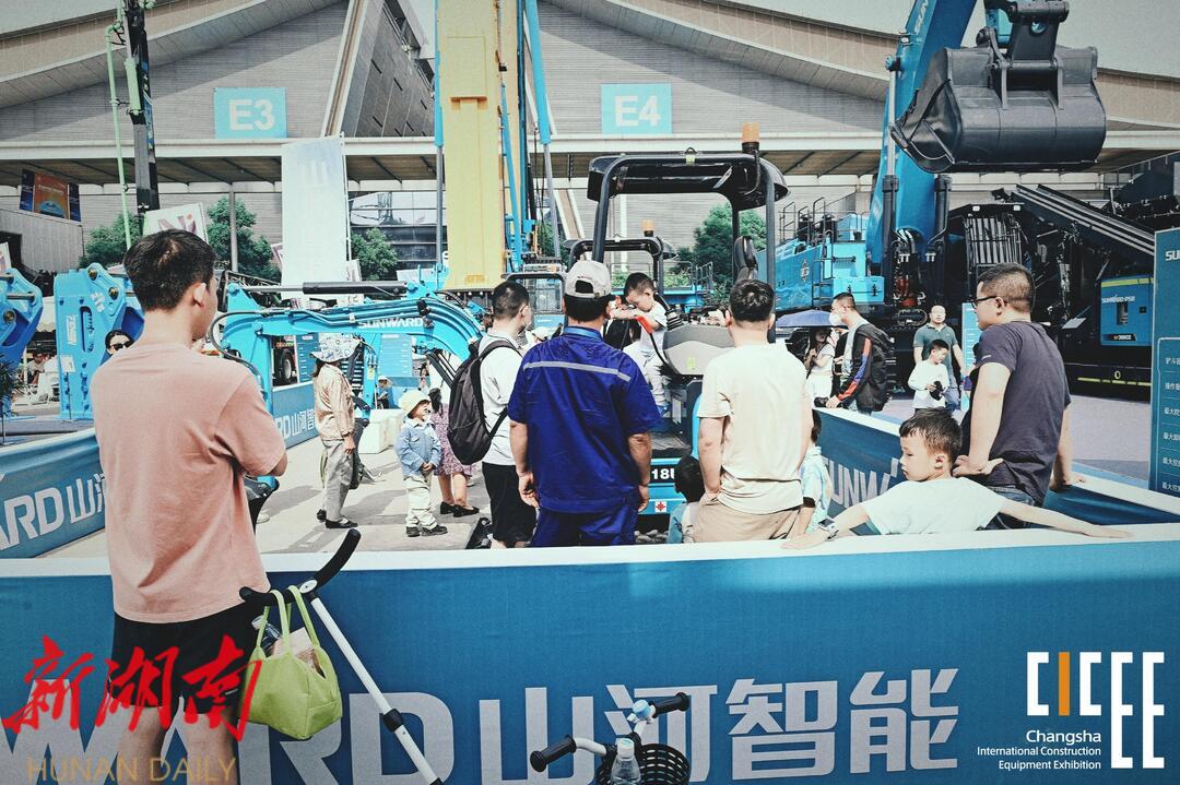 2023年5月12日,第三届长沙国际工程机械展览会举行。前来会展中心参观洽谈的观众和市民。