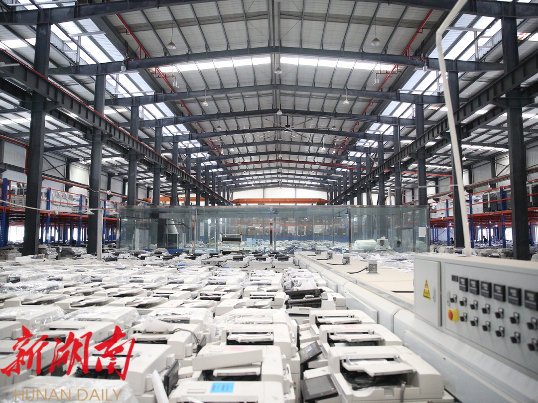 湖南日报·新湖南客户端5月29日讯(长沙经开区工作站记者 陈琪)近期,记者发现至简再制造复印机销往全球90多个国家和地区。在湖南至简复印机再制造有限公司的复印机产业园生产车间里,上千台各式专业复印机分门别类整齐排列,仔细观察,会发现一些复印机表面有残留的墨粉。