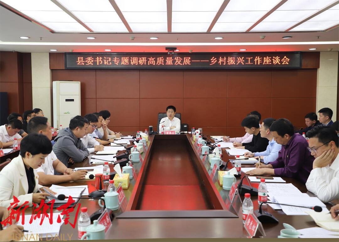 新江永客户端讯(记者 陈丽华 通讯员 何永煌 毛建军)为深入学习贯彻习近平总书记关于开展主题教育的重要指示精神,全面落实中央和省、市关于主题教育的决策部署,推动大兴调查研究工作走深走实,5月25日,江永县委书记唐德荣组织召开座谈会,专题调研全县抓党建促乡村振兴工作。