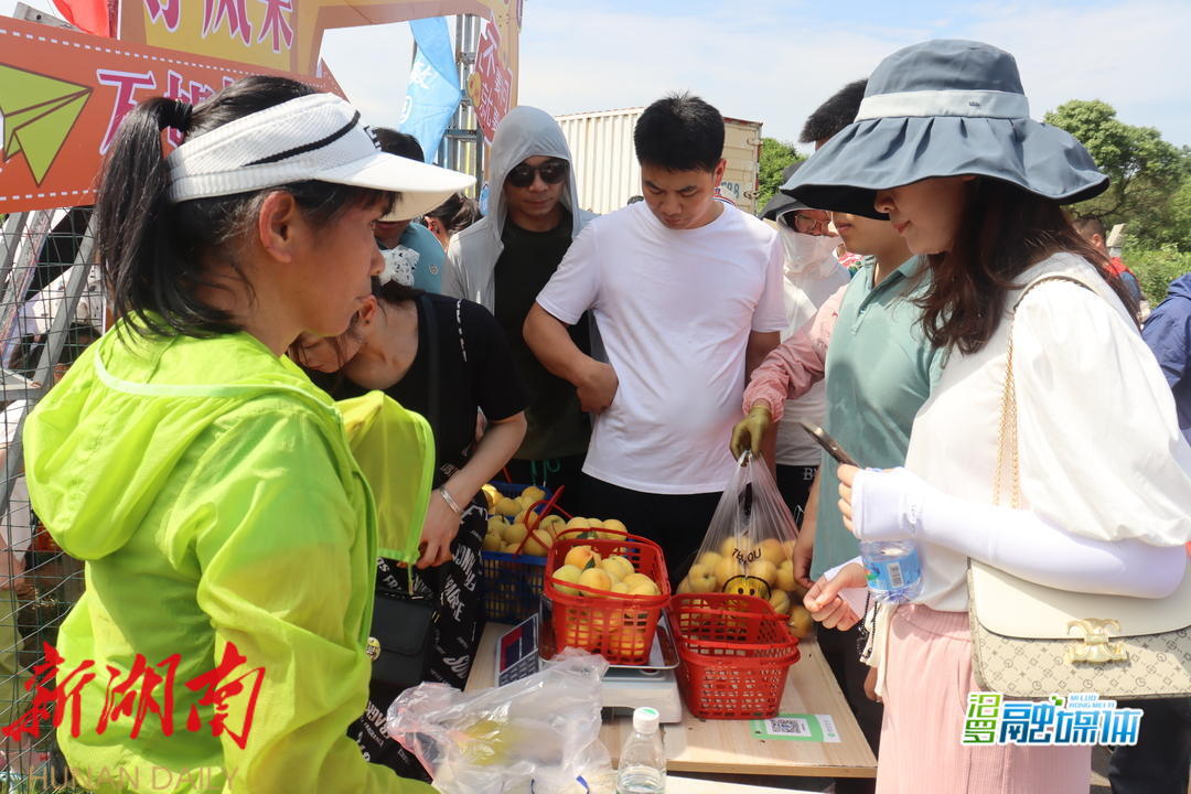 开幕式后,屈子祠镇双楚村敏园黄桃基地、金山村黄桃基地内迎来了一波波游客。基地里,只见黄桃果树遍布山头,硕大的黄桃身着纸质"外衣"挂满枝头,淡淡的果香格外诱人。游客们穿梭在桃林中,拍照打卡。"我们种植黄桃200多亩,今年预计产量将达到20万斤,主要采用‘线上线下’销售模式。"看着游客们满载而归,屈子祠镇双楚村敏园黄桃基地负责人李冬平满脸喜悦。