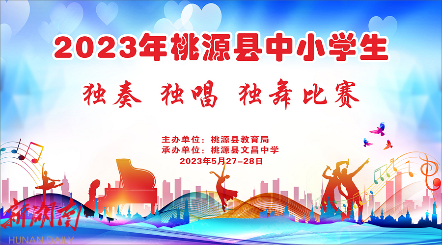 5月27至28日,2023年桃源县中小学生“三独”比赛在桃源县文昌中学成功举行。本次比赛设小学、初中、高中三个组别,设独奏、独唱、小学独舞、初高中组独舞四个比赛场地。全县1000多位中小学生选手在各自的赛场登台亮相,用自己的才艺展示了一场视觉和听觉的盛宴。