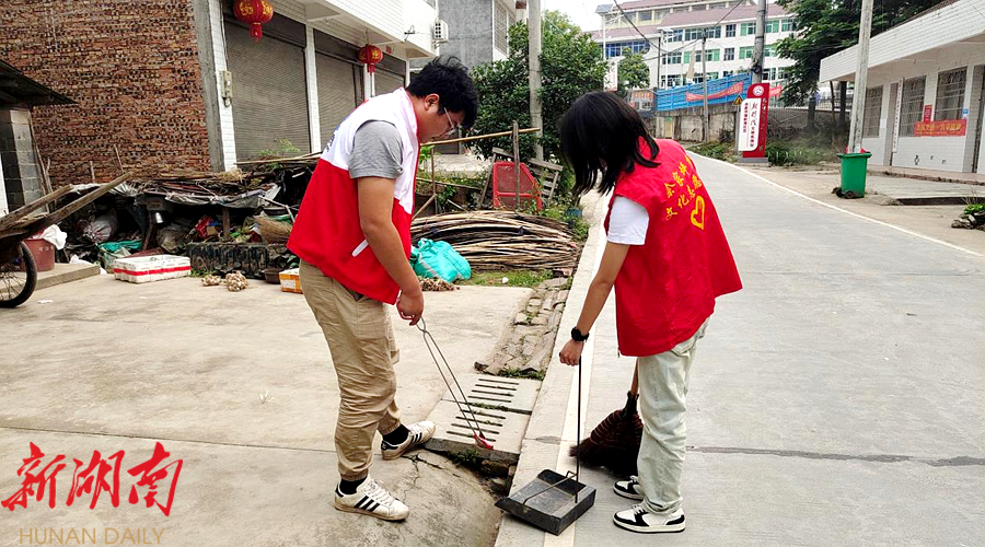 清洁环境我先行。 志愿者们在宣讲垃圾分类知识的同时组成清扫小队,带上扫把、垃圾袋、钳子等工具开展志愿清扫活动,对卫生死角、道旁沟渠的垃圾进行清理分类,以实际行动带动村民群众,提高参与度。