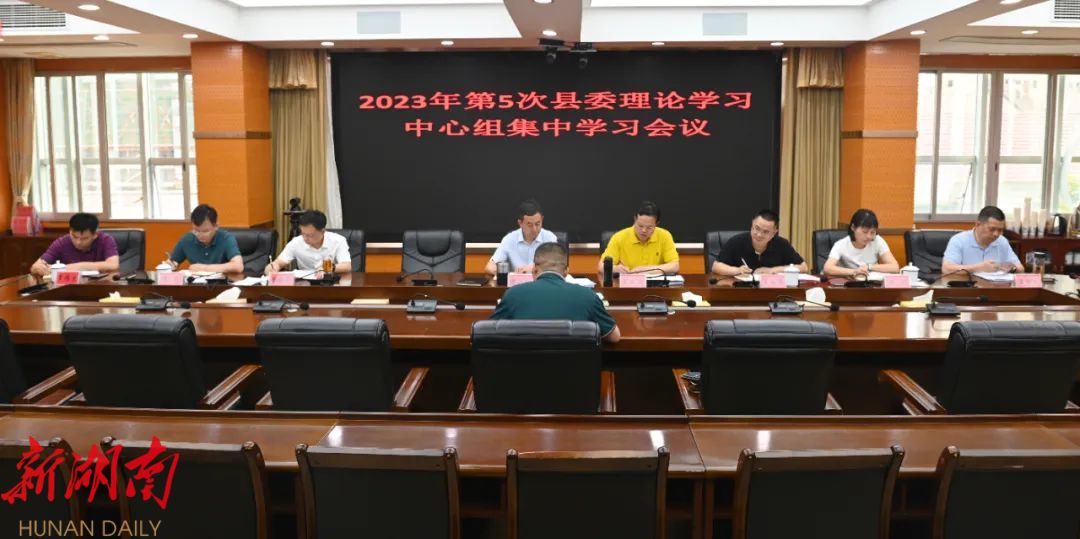 新新邵客户端5月31日讯 5月30日,新邵县委理论学习中心组举行2023年第5次集中学习,主要任务是深入学习领会习近平总书记关于发扬斗争精神、应对风险挑战、贯彻总体国家安全观的重要论述,坚持底线思维,强化风险意识,更好统筹发展和安全,确保全县社会大局和谐稳定。县委书记陈历贤主持并讲话,全体在家县委常委会会议成员参加。