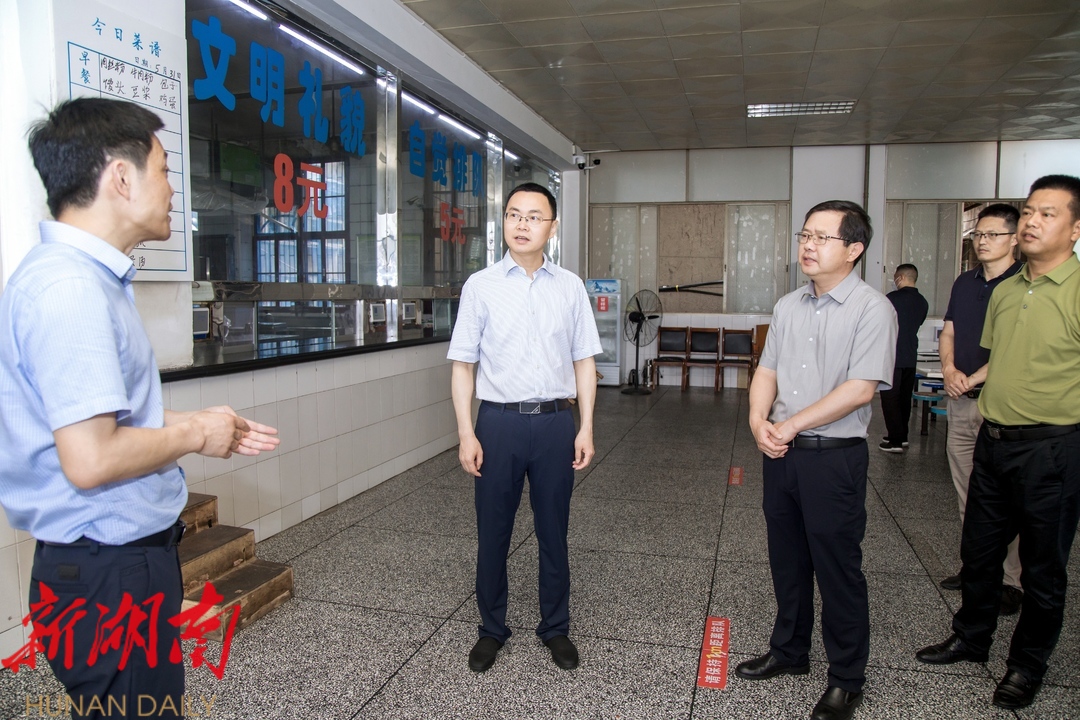 庞波在桃源九中查看食堂卫生和餐厅环境