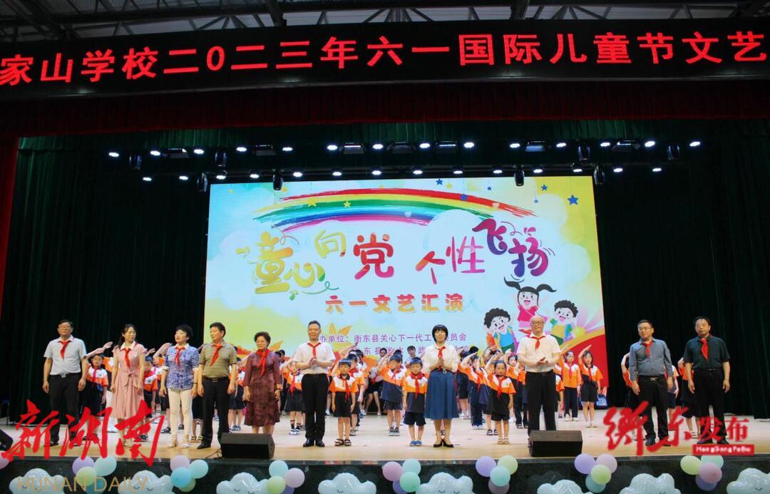 衡东融媒5月31日讯(融媒体记者 侯毅强 通讯员 刘媛婷 胡启慧 )5月31日,衡东县关心下一代工作委员会和衡东县洣水镇武家山学校联合举办2023年“童心向党 个性飞扬”六一文艺汇演。县委副书记、县委统战部部长伍松,县委组织部部长雷继红,县关工委主任曹玉芽等领导参加活动,并为120名贫困学子发放捐赠物资。