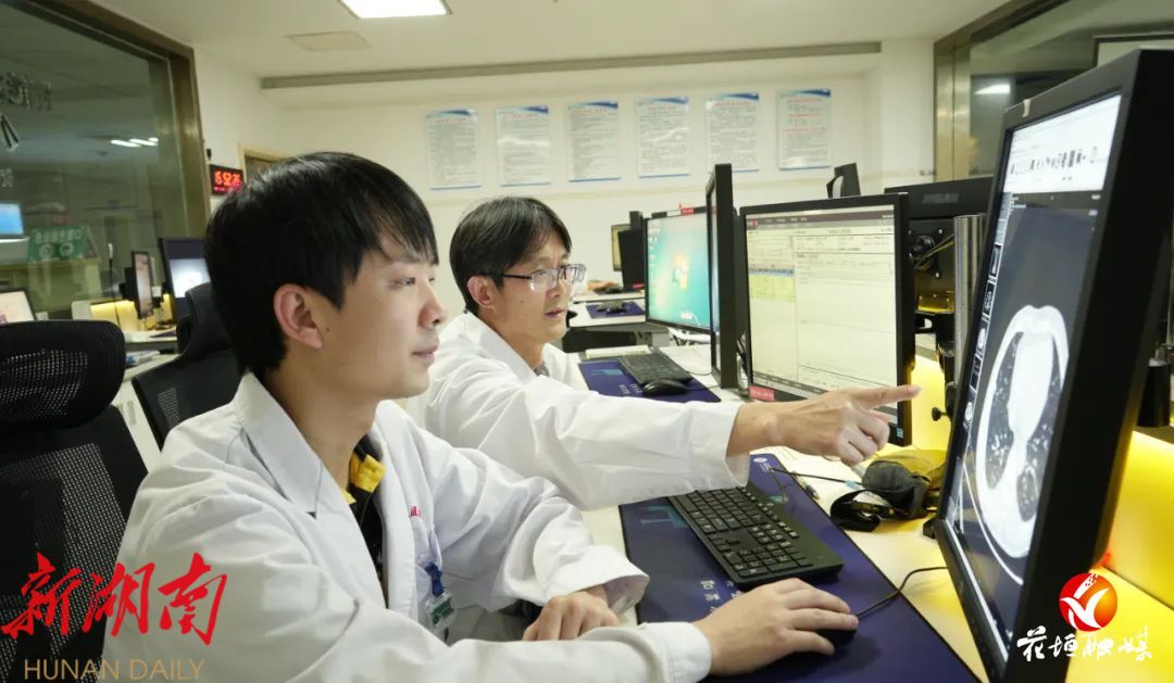 中南大学湘雅医院放射科熊曾教授(右) 、胸外科高阳教授(左)会诊中