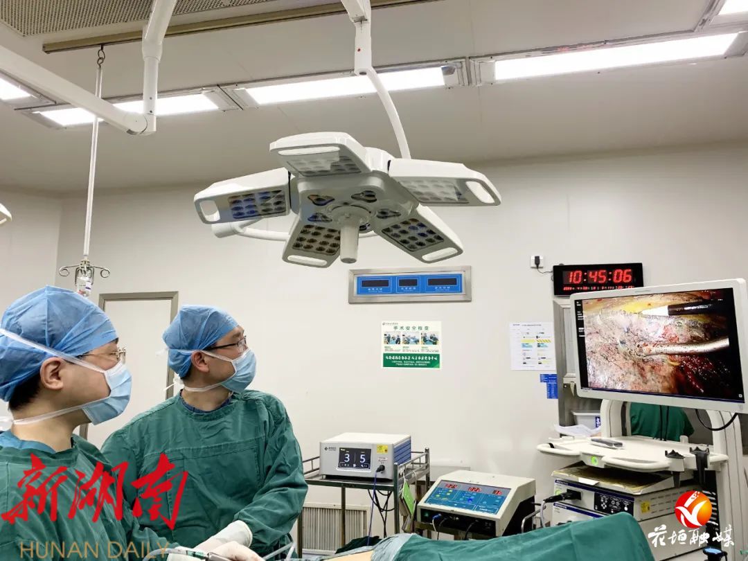 图为:花垣县人民医院手术室,中南大学湘雅医院胸外科高阳教授与普外科龙蛟主任为患者肺结节手术中。