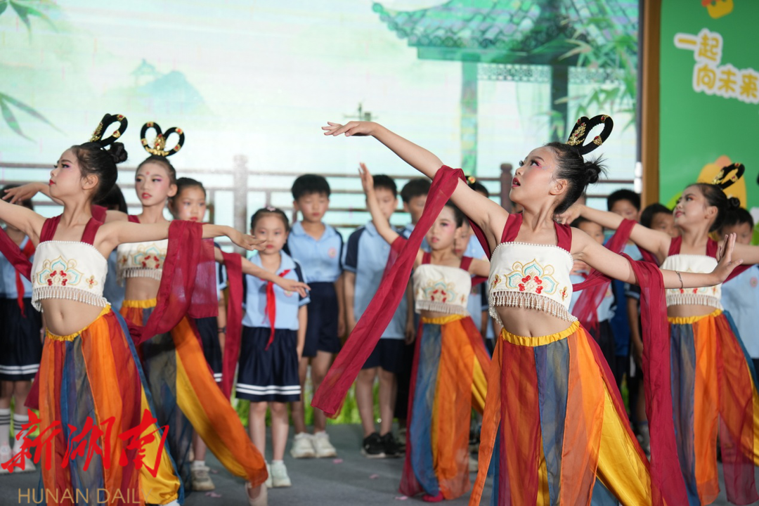 湖南日报·新湖南客户端5月31日讯(通讯员 姚翔文 罗莎)为进一步丰富校园文化生活,激发学生热爱生活、热爱学习、热爱校园的情感,在“六一”国际儿童节来临之际,5月31日,长沙县蓓蕾小学全体师生和家长欢聚一堂,举办庆“六一”主题活动。活动分为两个部分,上午为“快乐六一 童梦飞扬”文艺汇演,下午为“花漾童趣节 拾趣好食光”零食分享会。