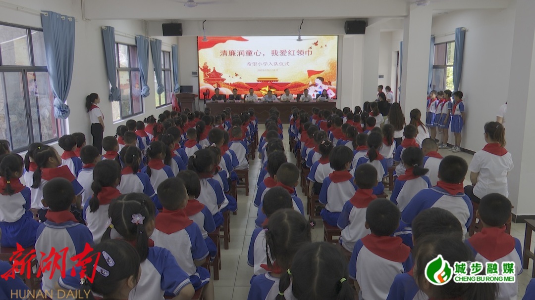 活动首先进行了“清廉润童心 我爱红领巾”入队仪式。伴随着激昂的音乐,县希望小学全体少先队员高唱《中国少年先锋队队歌》,六年级少先队员代表为新入队的少先队员佩戴红领巾,全体少先队员用稚嫩而坚定的声音进行宣誓,并表示将好好学习,争做新时代好队员,为实现中华民族伟大复兴而奋斗。