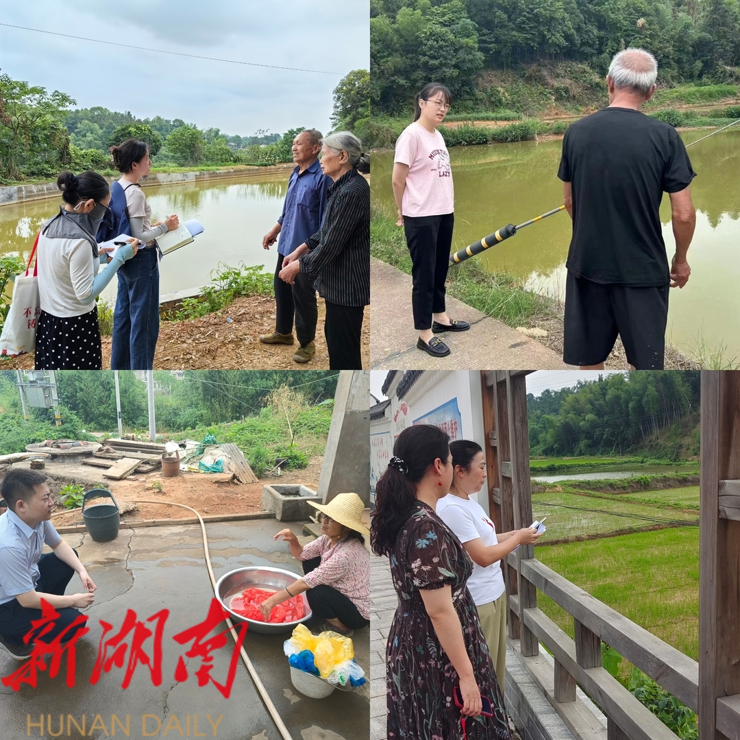 今天,我们深入群丰镇长岭、湘云、石塘、旗云四个社区。聚焦农业生产最关键的“山塘水库”,调查组的成员们越过田埂,穿过土坎,同农民朋友细致攀谈,了解乡村产业发展所需,了解广大农民所盼,在那一个个“老虎塘”、“曲尺塘”等朴素的水塘名称中感受到农民的朴素和坚韧,也在心里默默萌生了守护和助力这美丽乡村、乡情的想法。