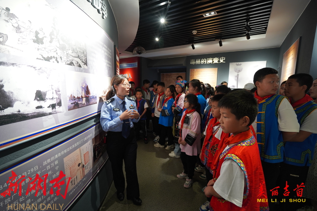 在湘西州毒品预防教育 基地,讲解员通过现场展品、展示案例等,让大家了解毒品的种类及危害、禁毒法律法规以及近年来打击毒品的违法犯罪成果。