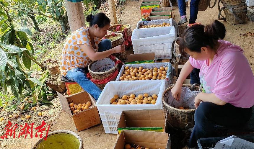 村民们将一筐筐黄澄澄的枇杷从山上挑到山下,然后清选、装箱、运输。“天气好,我们必须尽快把熟了的枇杷摘下来,每天请20多人来帮忙采摘打包,还是有点忙不过来,枇杷一下树打包就被买走了。 ”基地负责人舒大和笑着说,现在每天都有不少销售商和游客来购货,都是奔着大和枇杷良好的口碑和口感来的。