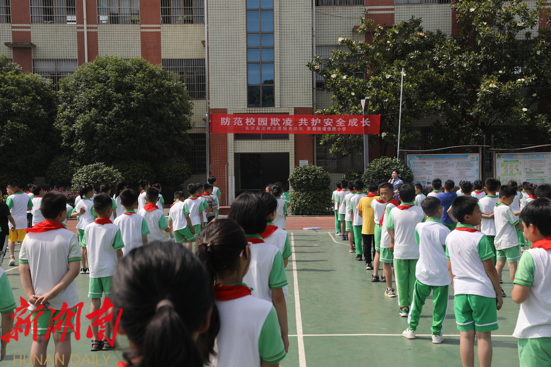 在㮾梨街道佳欣小学,长沙县检察院青工委主任、 “星检说”普法服务团主讲检察官王欧雯为大家带来“防范校园欺凌 共护安全成长”主题普法课。检察官结合办案实践中的典型案例,深入浅出地介绍了校园欺凌的多种表现形式和危害,并向学生们传授了科学应对校园欺凌行为的原则,教育孩子们自信自强、勇于依法维护自身合法权益。课上,检察官还带领大家一起诵读了防范校园欺凌、强化自我保护的倡议书。