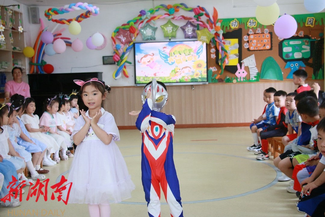 5月31日,武陵区中心幼儿园的小朋友们穿着自己最喜欢的衣服,和小伙伴一起玩游戏、看电影,大胆自信地展示才艺,和爸爸妈妈共享亲子晚餐,许下的六一心愿全都实现, 度过了属于他们自己的六一儿童节。