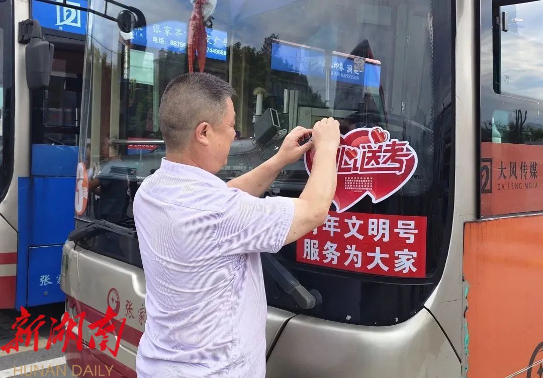 湖南日报·新湖南客户端6月6日讯(记者 胡苗) 6月6日,记者了解到,今年高考期间,市交通运输局、市道路运输服务中心、永定区文明办、永定区教育局、张家界市公共交通发展有限公司联合开展“爱心送考”服务活动,在6月7日、8日、9日高考期间,所有高考学子可免费乘坐“爱心送考”公交车。