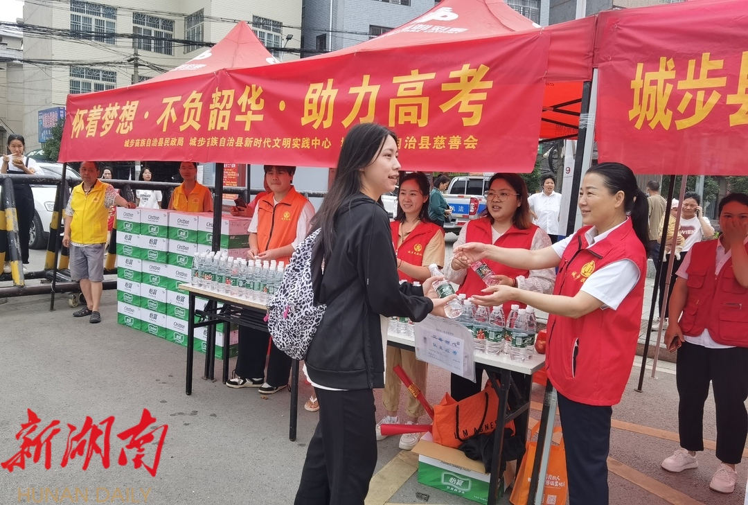 早晨7点左右,记者看到相关职能部门的考务工作人员已在城步一中考点忙碌着。城步一中考点实行交通管制,为考生提供绿色通道,在交警部门提前疏导下,城步一中大门两侧道路夜停车辆被清离,无关车辆一律绕行;县新时代文明实践中心组织志愿者开展爱心助考服务,组建爱心助考车队免费接送考生;民政社工在考点门口设立志愿者服务站,为考生提供矿泉水、考试文具和引导服务,用暖心服务助力高考,营造“平安高考、和谐高考、温馨高考”环境。