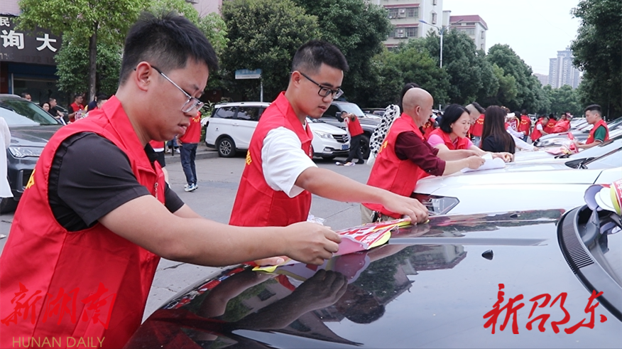 活动现场,爱心志愿者们为70多辆爱心送考车张贴“共青团邵东市委高考免费用车”标识。高考期间,“爱心送考”车队将为邵东市内参加高考的考生提供“一对一,点对点”的定人、定车、定点免费接送和应急送考服务。全市高考考生和陪考家长可凭准考证免费乘坐张贴“共青团邵东市委高考免费用车”标识的志愿车辆前去高考考点。