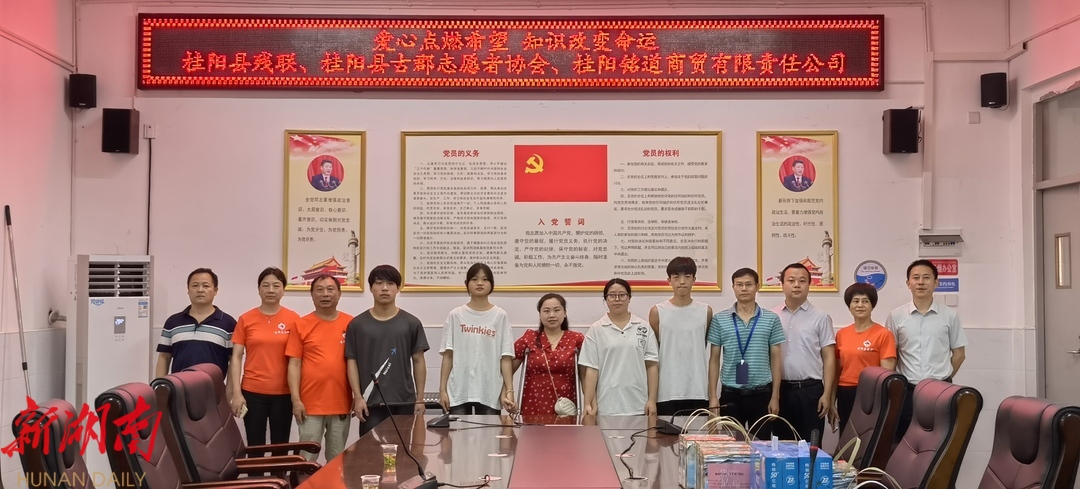 新桂阳6月7日讯(通讯员 周桂萍 )高考临近,近日,县残联联合县古郡志愿者协会、县铭道商贸有限责任公司,到甘甜中学、桂阳一中、县职中、桂阳八中开展爱心护考活动,看望慰问在校残疾考生,并为他们送上防暑药品、牛奶等物资。