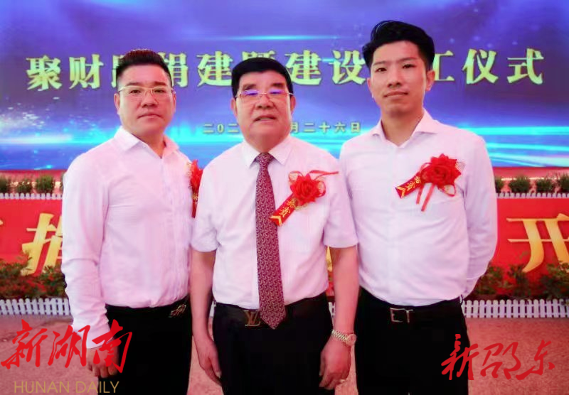 黄玉彪和其子黄璞、黄珏在聚财路开工仪式上合影