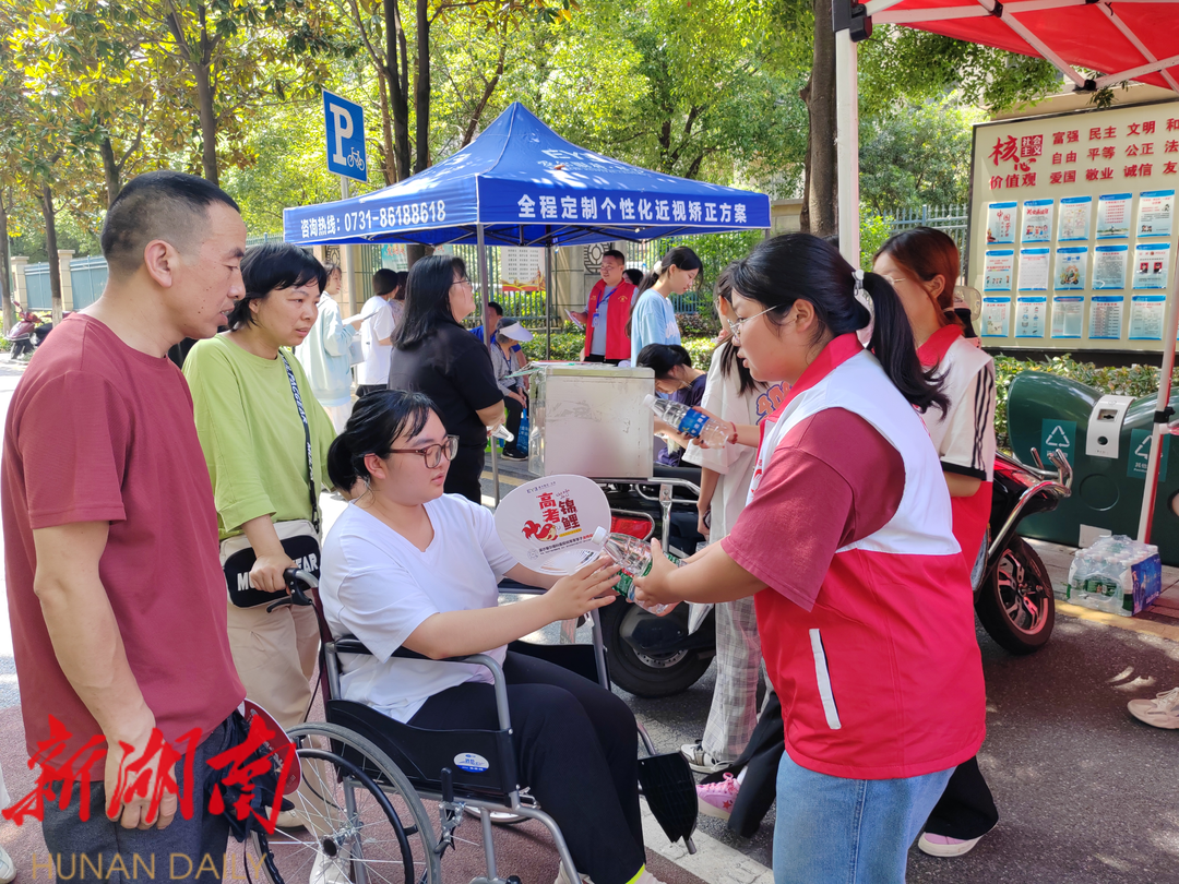 为更好服务学生和陪考家长,今年共青团长沙县委在长沙县一中、长沙县实验中学、特立中学、长沙县职业中专星沙校区、松雅湖中学等五个高考考点设置“爱心护考”学雷锋志愿服务站,并免费提供牛奶、面包、医药箱、水、扇子、文具、充电宝、防暑药品等物资;为考生及家长提供休息场地。