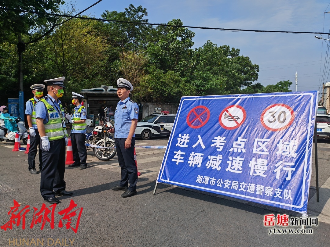 根据两个考点周边道路的条件和交通特点,交警部门重点对这两所学校周边的道路实施了交通管控,在距考点较近的三中路口、湘钢转盘、峨嵋路口等路段设置了禁停、禁鸣、限速等标志。此外,岳塘交警还对经过考点周边道路的车辆进行了分流疏导,同时提醒过往车辆减速慢行,禁鸣喇叭,减少噪音对考生的影响,确保校园周边安静、安全。同时,采取必要的管控措施,严格控制车辆的进出和停留,对考点周边各重要路口设置了禁行标志,严禁机动车通行,指挥车辆绕行。