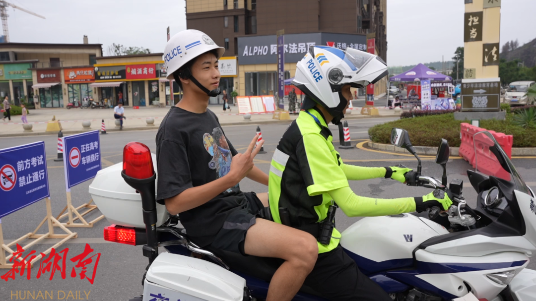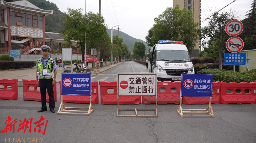江永县交警大队副大队长宋红庆表示,我们在考点门口设置了高考服务车、铁骑应急服务队和绿色通道,随时应对考生和家长的求助。