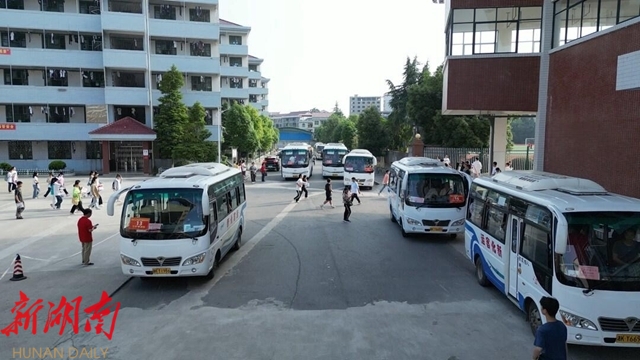 “我校精心准备,统筹调度,一共租有18辆班车,对我校在校外考生统一进行接送。每辆车安排了一名跟车老师,每一个考点安排了一名负责同志,确保安全准时将每一位考生送达相应考点,顺利参考。”新化三中办公室主任刘强说。