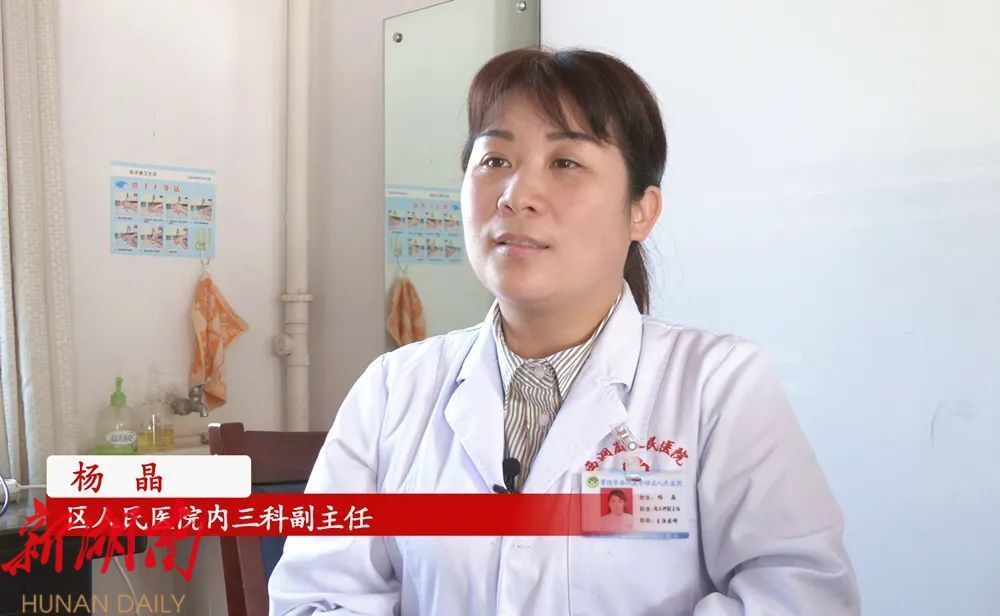 【同期声】区人民医院内三科主任 李琼:杨晶医生是我们西洞庭医院内三科副主任。平时,杨晶医生在工作中比较认真负责,对病人也和蔼可亲;专业上自己一直要求精益求精,做的更好;为人处世方面,上下沟通都做的比较好,是我们科室在内分泌、糖尿病方面的一个中坚力量,对科室的发展做出了比较大的贡献。希望我们科室、医院(的同事)都向她学习。