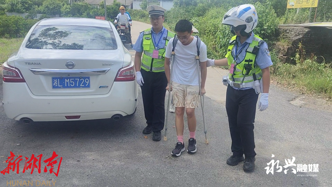 护航高考|永兴县交警帮助腿部骨折考生前往考场赢得点赞