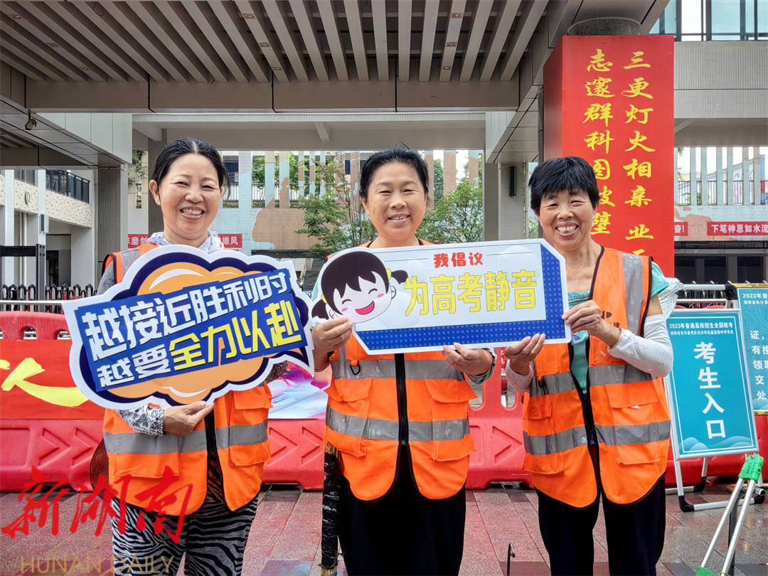 6月8日,长沙市弘益中学考点外,泉塘街道润浩物业公司环卫工人以“精、静、净”全力护考,为考生、家长营造一个干净整洁、清爽舒适的考试环境,“环卫橙”,“橙”意满满,为学子加油!