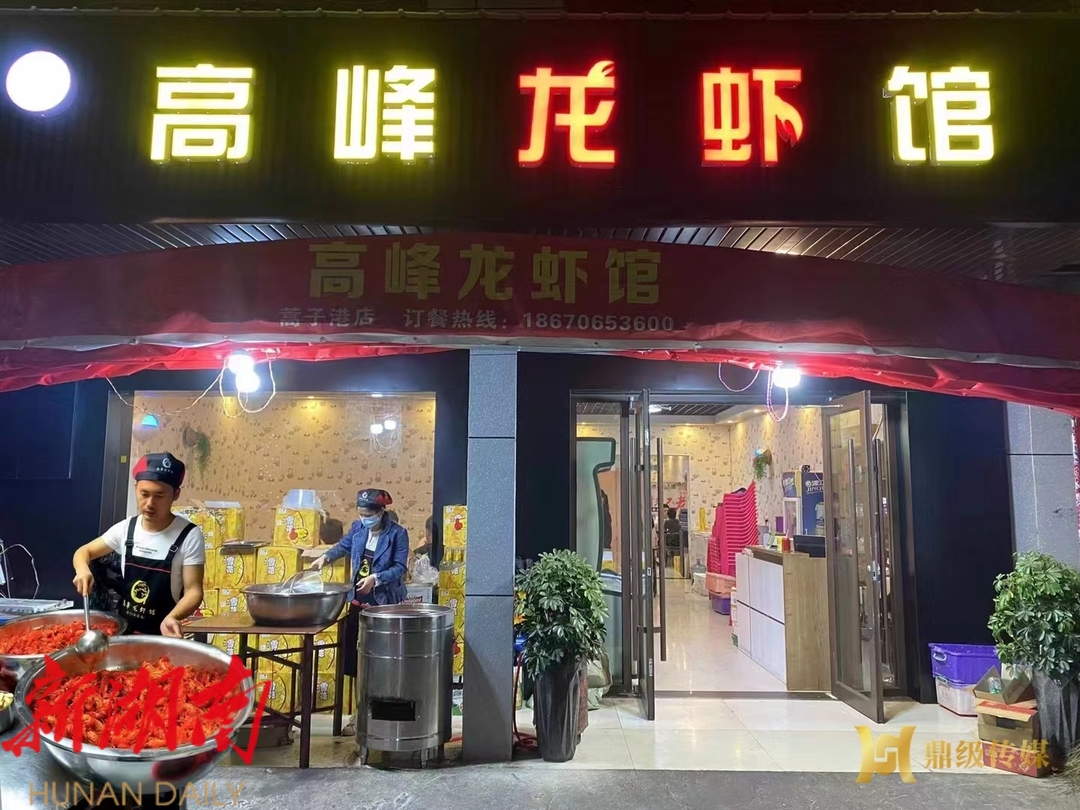 湖南日报·新湖南客户端 6月8日讯(通讯员 何梦黎)“老板,帮忙下单”“老板,麻烦再来一份龙虾”……,6月7日晚9点,蒿子港镇集镇上的高峰龙虾馆生意红火,老板高峰忙得不亦乐乎。