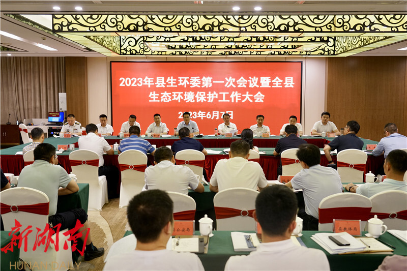 湖南日报·新湖南客户端6月8日讯(通讯员 熊佳 周星亮) 6月7日,县生环委第一次会议暨全县生态环境保护工作会议召开,县委书记肖湘晖主持会议并讲话。他强调,要深入学习贯彻党的二十大精神和习近平生态文明思想,统一思想、凝聚共识、压实责任,全面推进岳阳县生态环保工作更好落细落实。