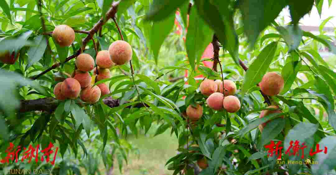 猪血桃又名衡山红脆桃,是我县历经多年选育形成的早熟品种,已有120多年的种植历史。因果肉血红、香气浓郁、甜脆爽口、多汁离核,深受大众喜爱。2019年,衡山红脆桃获国家地理标志农产品登记。