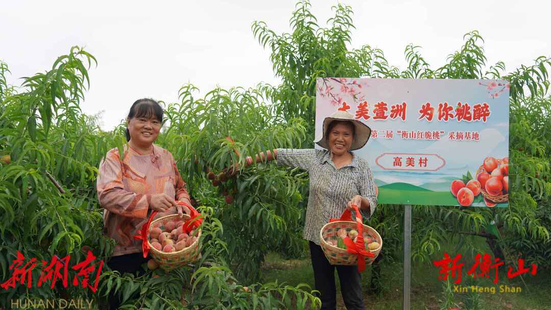 衡山县融媒体中心6月8日讯【记者:廖晶 戴玮 通讯员:李惠蓉】 近日,衡山县萱洲镇6000余亩猪血桃陆续成熟,迎来采摘高峰期。