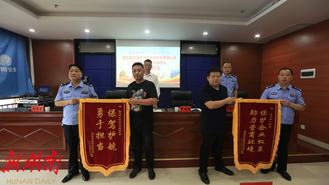 “感谢桂阳县公安民警为这次锌锭诈骗案的圆满办结所做出的辛勤和努力 ,我们对于桂阳县的营商环境更加充满信心,我们将把我们民营企业做得更好,为桂阳县的经济和社会发展做出更大的贡献。”桂阳某新材料公司副总经理杨孚元说。,